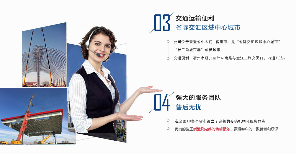 宿州市祥誠鋼結構科技有限公司位于宿州市經開區外環南路與金江二路交叉口北,公司是一家以建設產業化為目標,匯集大型鋼結構廠房、彩鋼活動房設計、制作、安裝施工一條龍服務的知名鋼結構公司。公司現有固定資產1000余萬元、流動資金近千萬元公司?,F有員工40人,大專以上學歷30人,其中高級工程師1人、工程師2人、會計師1名。各工種持證上崗率100%。高效化的年青團隊為公司帶來了蓬勃發展的動力,全體員工以務實的態度,拼搏的精神,創造著企業的每一天。      公司組織結構嚴格按現代企業制度設計,管理機構設置合理,制度完善,各部門分工明確...